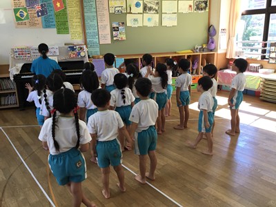 各教室では、「おつきさま」の歌を歌ったり、お月様にちなんだ絵本の読み聞かせ、十五夜に関するお話などを聞いたりして、日本の伝統行事にふれる貴重な機会となりました。