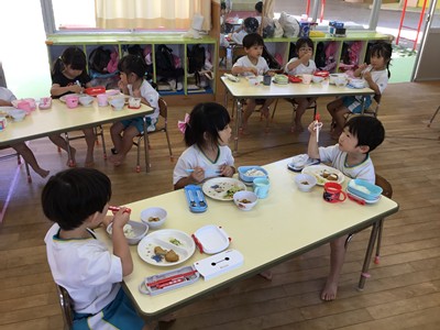 給食にもお月見団子が出され、子供たちはニコニコ笑顔で美味しくいただきました。