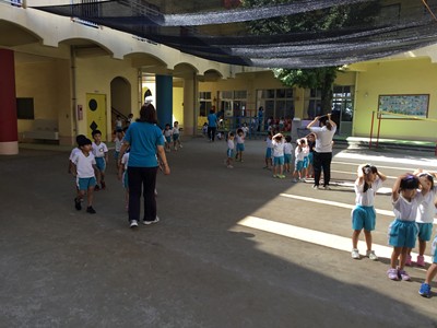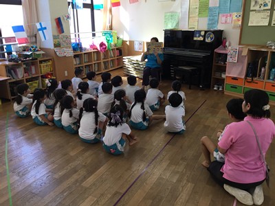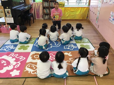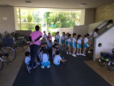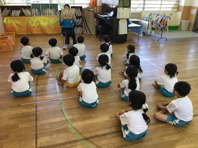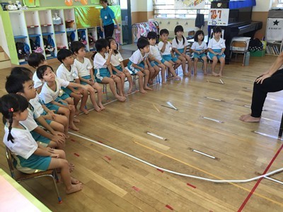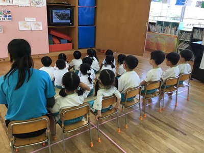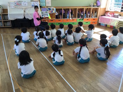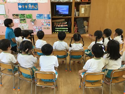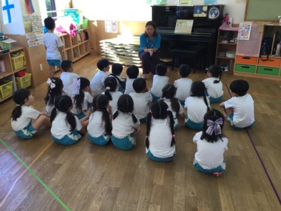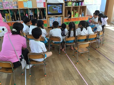 事前に各クラスで、紙芝居や先生のお話などで、地震や津波の時の避難の仕方や、恐ろしさなどについて学びました。