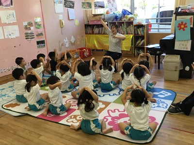 その後、地震発生の放送を聞き、子供たちは身分の身を守る行動をとり、次に大津波警報発令の放送を聞き、先生方の指示により園庭に避難しました。