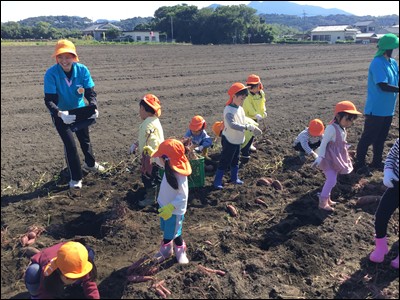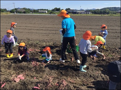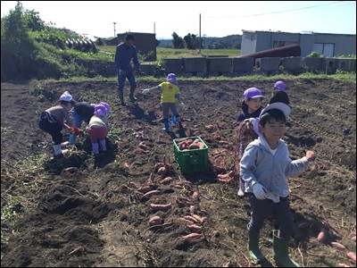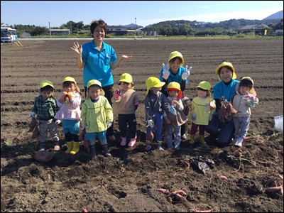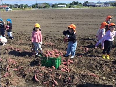 お陰様で子供たちは、土のにおいをかいだり、感触を確かめたり、芋の形や重さを比べるたりするなど、五感を活かした貴重な体験ができました。