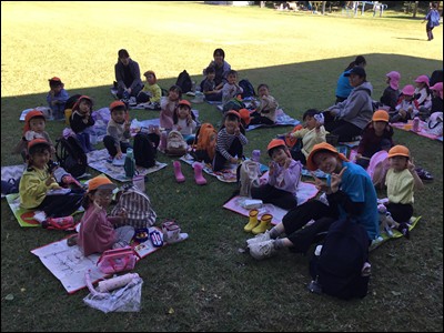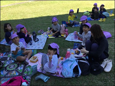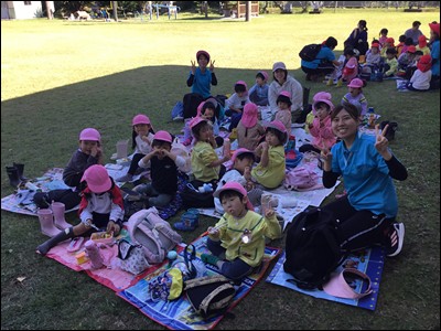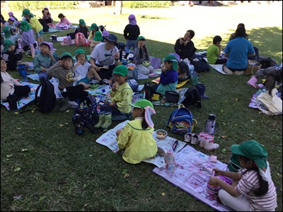 お弁当の後は、広い芝生の上で、鬼ごっこをしたり、遊具で遊んだりと楽しく過ごすことができました。