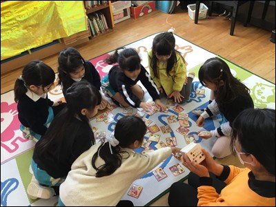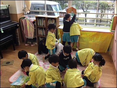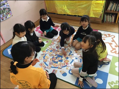 久しぶりに友達と会えて、一緒にかるた遊びをしたり、絵本を読んだりして、楽しく過ごしていました。