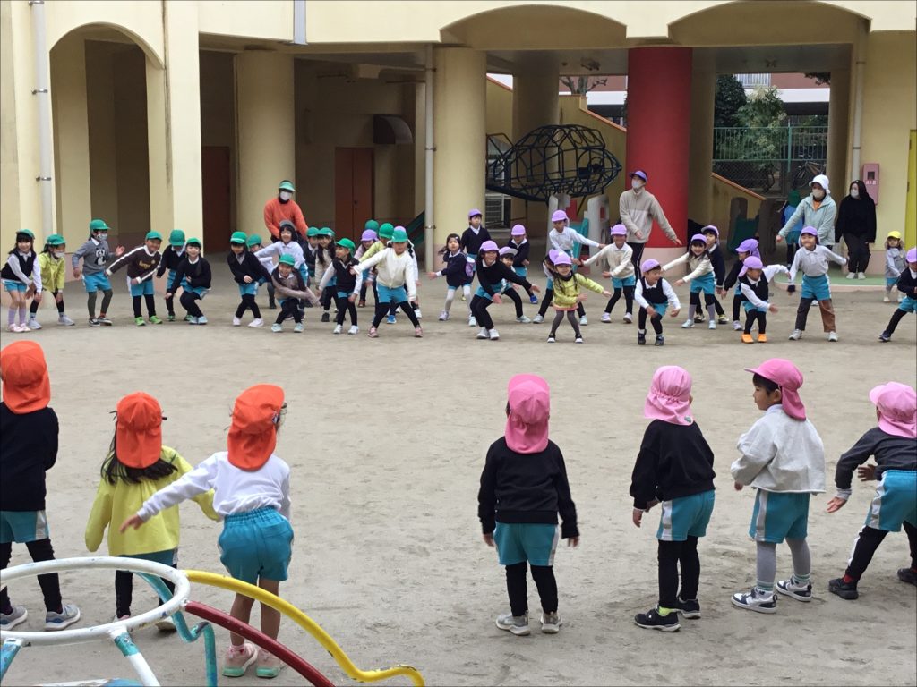 全園児でダンスに取り組む「集団リズム」を行いました。