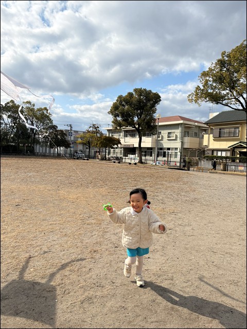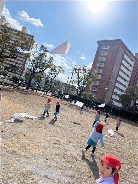 糸の長さや風の向きを考えながら上手に凧をあげることができましたよ!