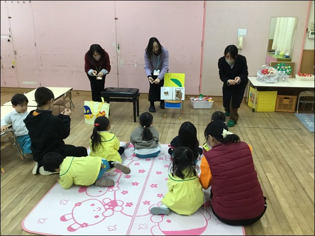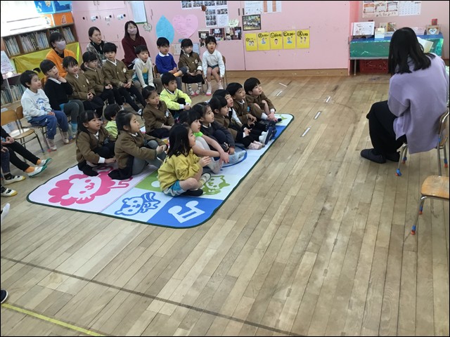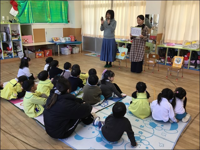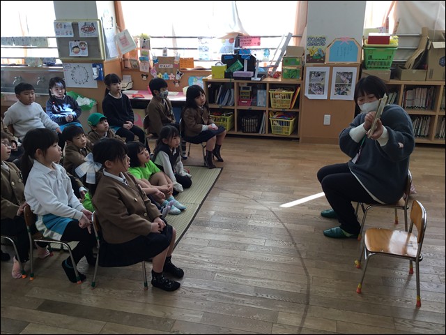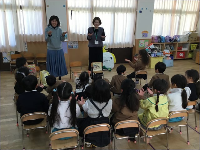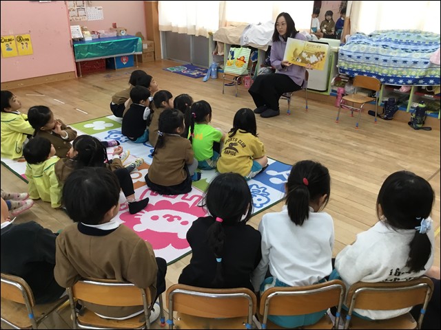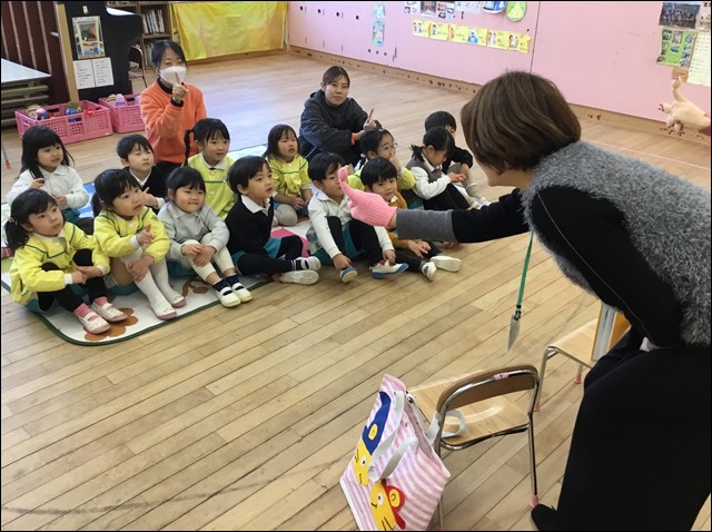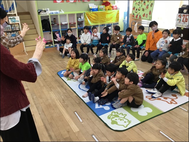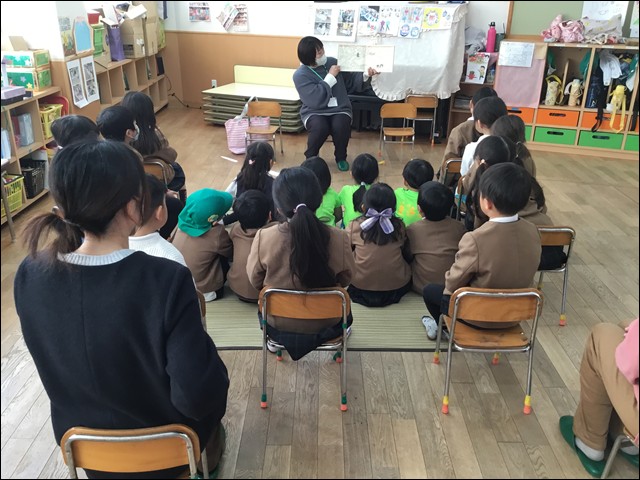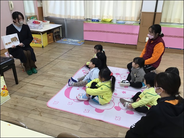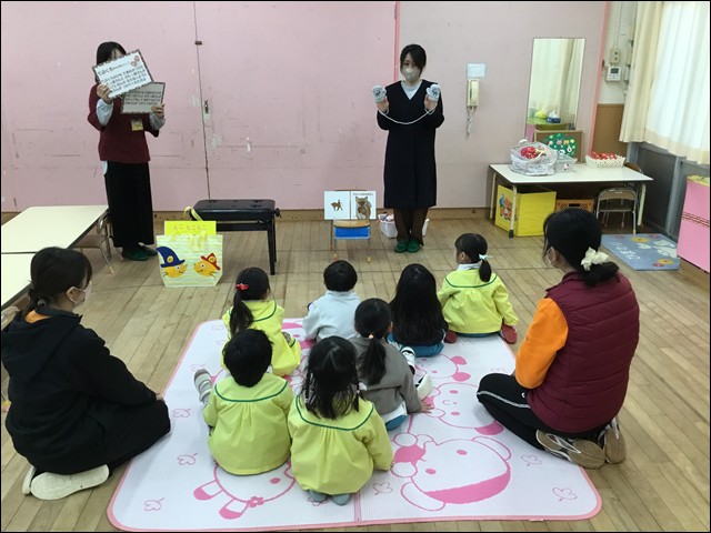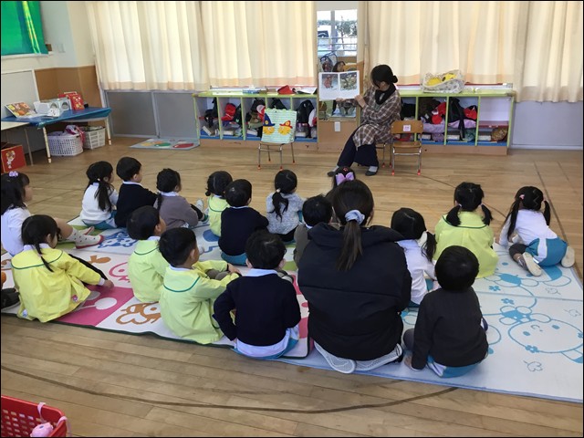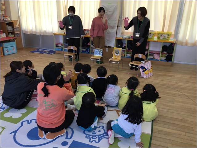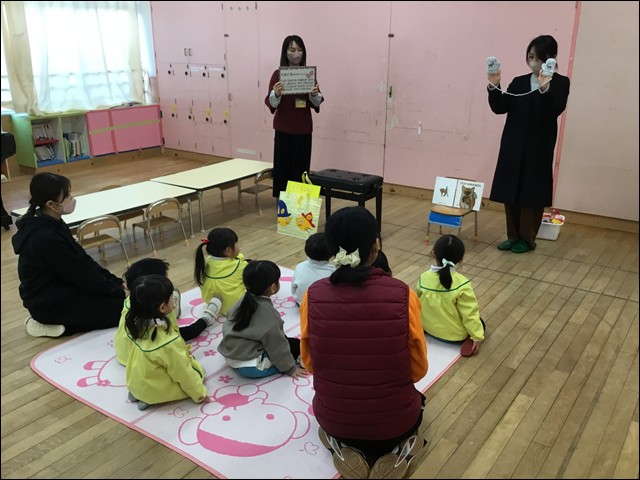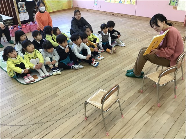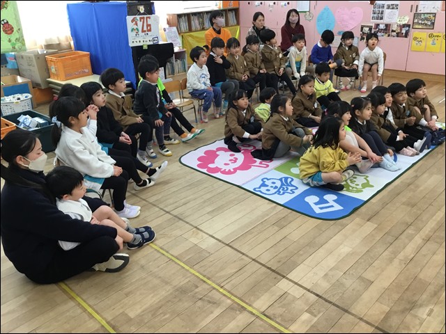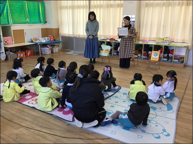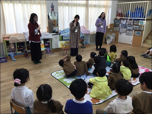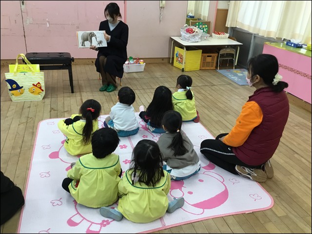 全クラスでの読み聞かせや指遊びなどに、子供たちは、真剣に聞き入っていました。