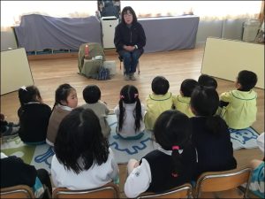 りんごの木のお話会の皆様においでいただき、年中さん、年長さんに「読み聞かせ」や「素話」、「指遊び」などを行ってくださいました。 絵本「おしくらまんじゅう」「おもち」などの絵本の読み聞かせに、子供たちはお話の世界に引き […]