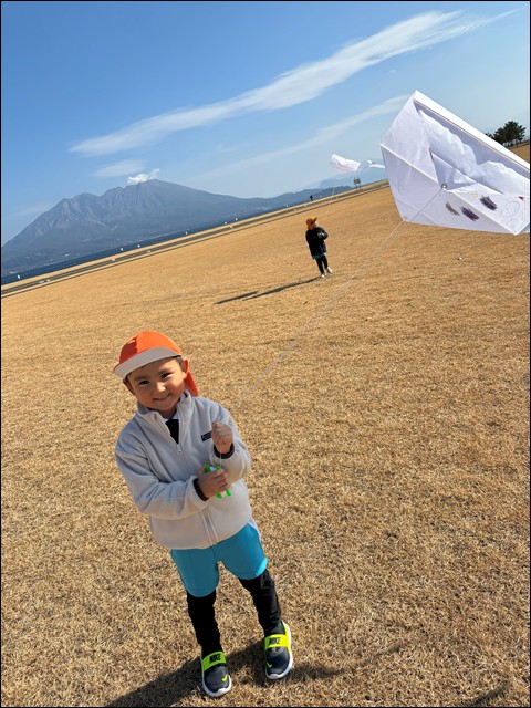 凧あげ(年中) 2026年2月6日 最終更新日時 : 2026年2月6日 kamoike 年中さんの子供たちが、マリンポートで凧あげにチャレンジ! 天候にも風にも恵まれ、凧あげを存分に楽しみました。 桜島をバックに「はい、ポーズ!」 楽しく充実した凧あげとなりました。