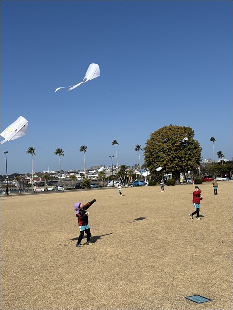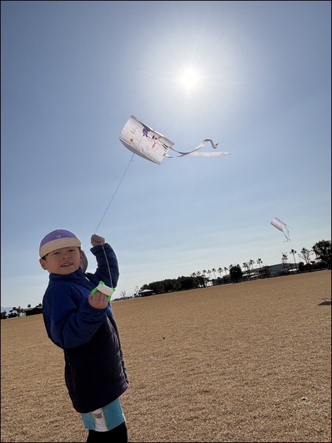 凧あげ(年長) 2026年2月13日 最終更新日時 : 2026年2月13日 kamoike 年少・年中さん続き、年長さんもマリンポートで凧あげにチャレンジ! 凧をもって笑顔で広場を走り回る子供 上手に風を受けて高く凧をあげている子供 天候にも恵まれ、楽しいひと時を過ごすことができました。