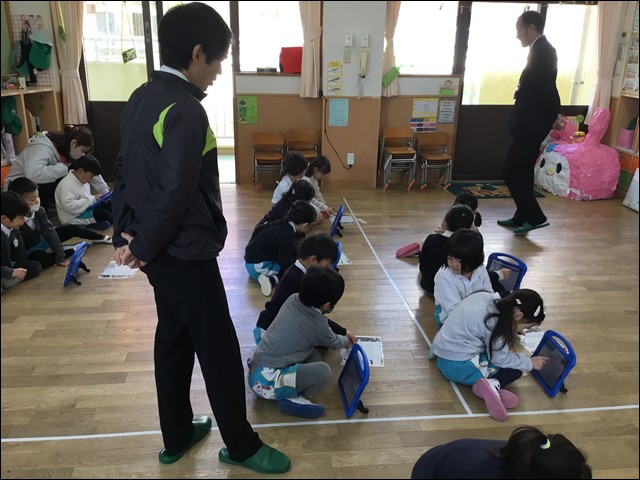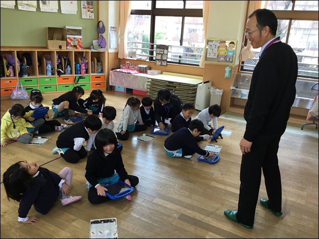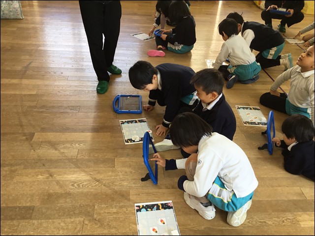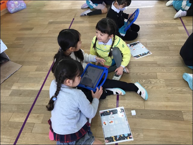 鳳凰高等学校の先生が講師となり、年長さんが、本年度最後のICT学習に取り組みました。