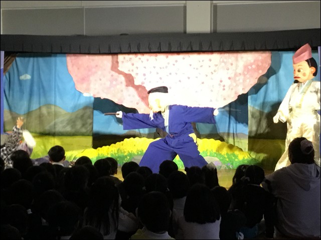 劇団バクによる「花咲かじいさん」の着ぐるみ人形劇の観劇会を行いました。