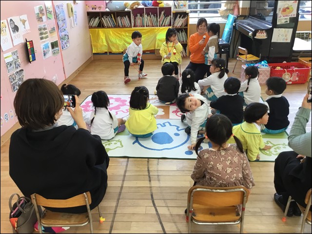 また、みんなから「何歳になりましたか」の質問にも、「4歳!、5歳!、6歳!」と元気いっぱい答えていました。
