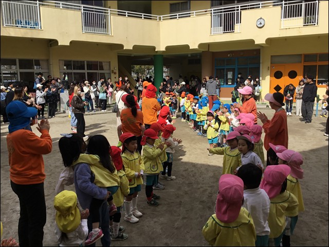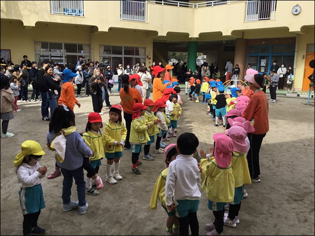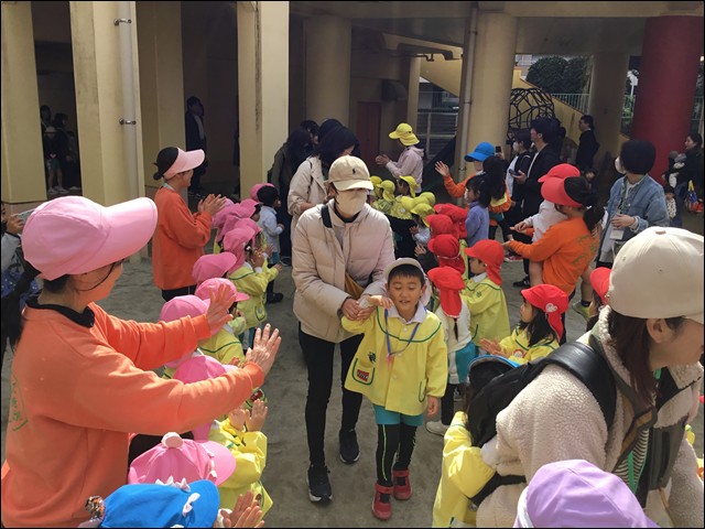花道をつくって年長さんを見送りました。